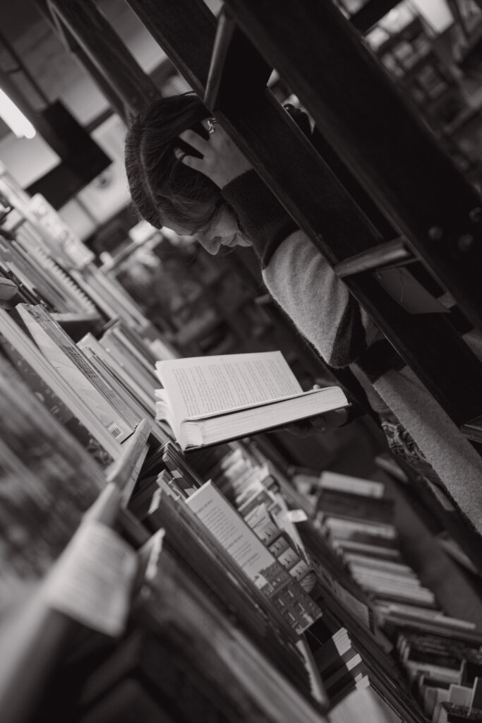Bookstores make the perfect cozy backdrop for winter sessions — warm light, quiet corners, and the kind of stillness that invites connection. You can wander the aisles, flip through old pages, or just sit together in a quiet nook with coffee in hand.